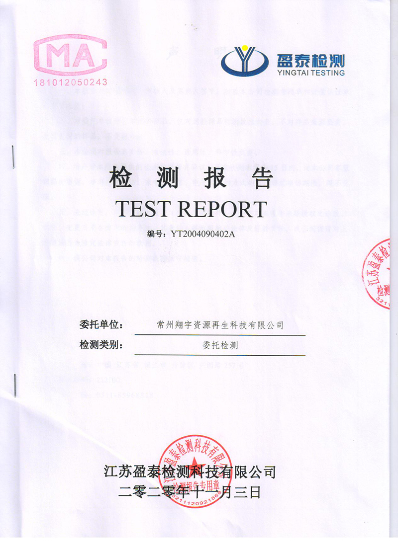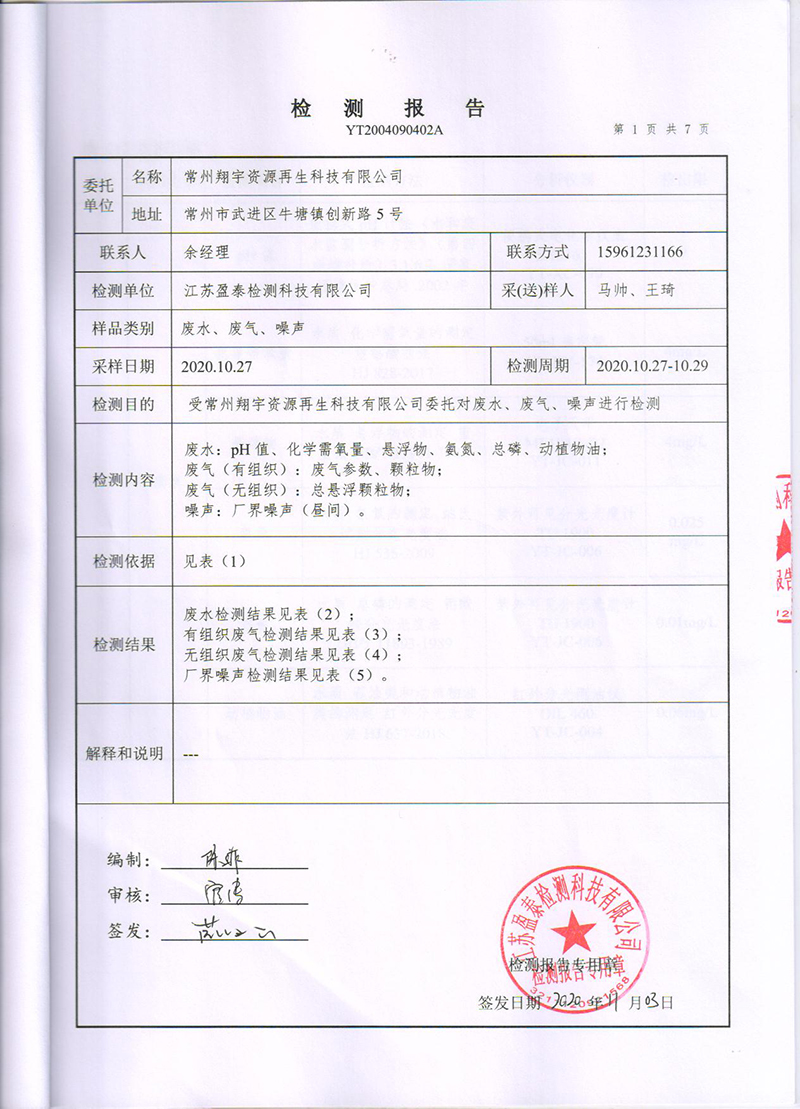 常州翔宇资源再生科技有限公司 2020年下半年度环境监测结果公示