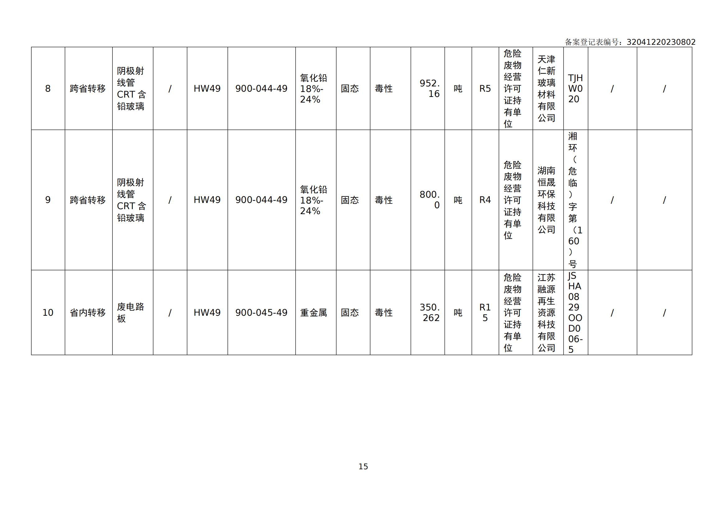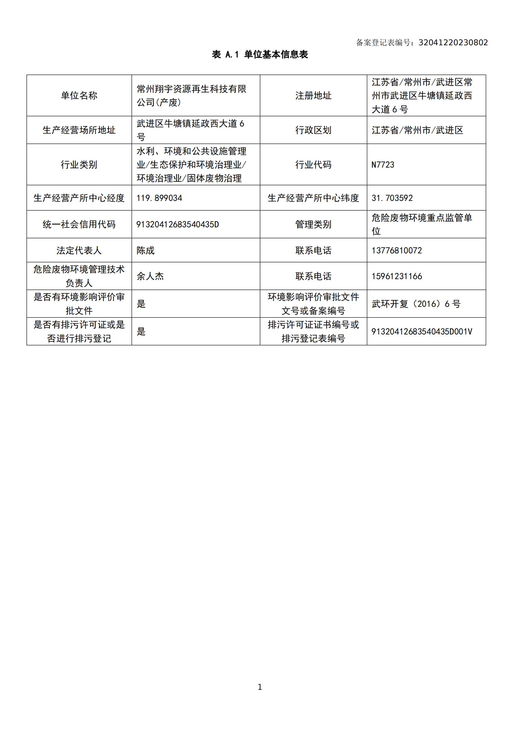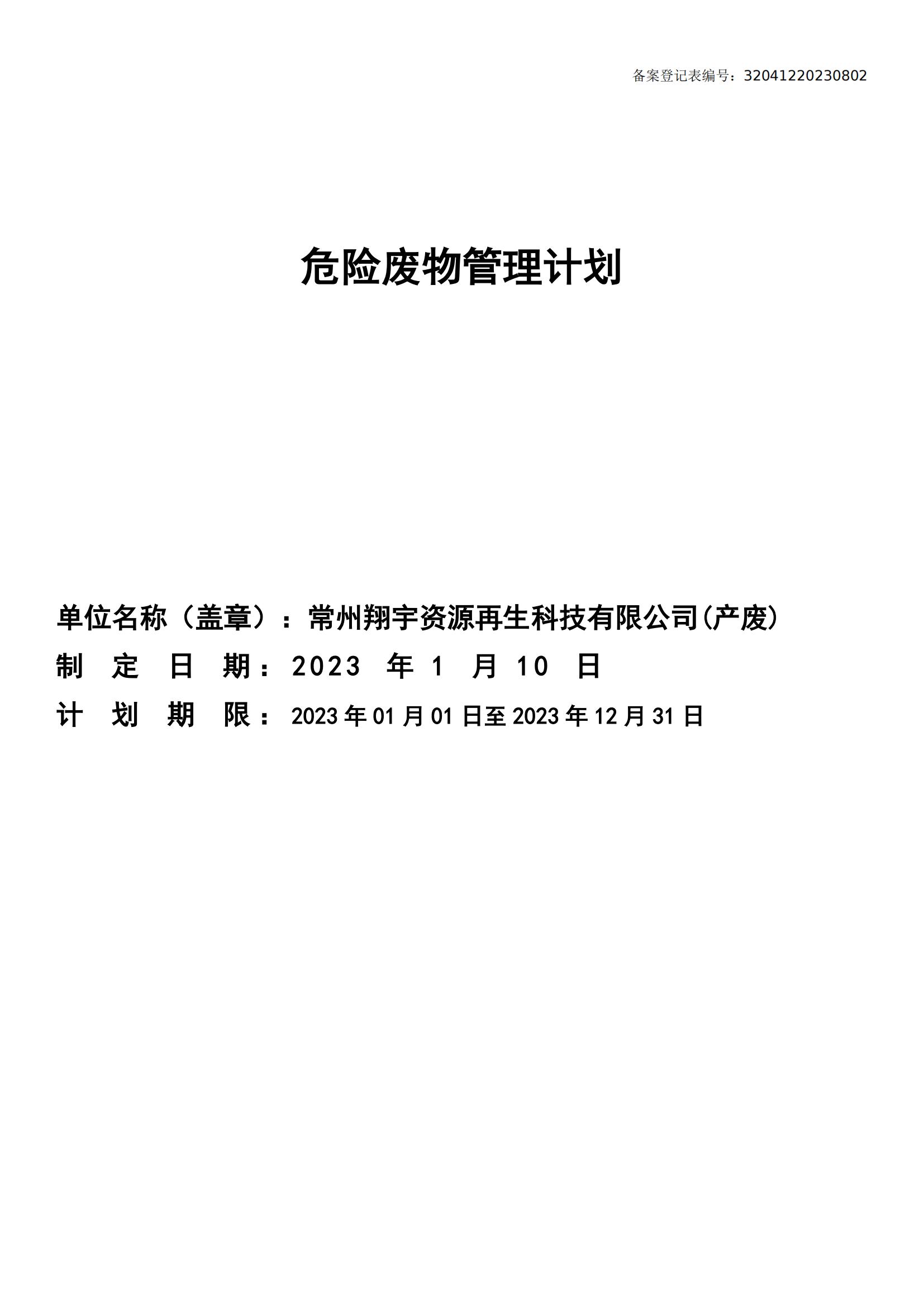 常州翔宇资源再生科技有限公司2023年危险废物管理计划