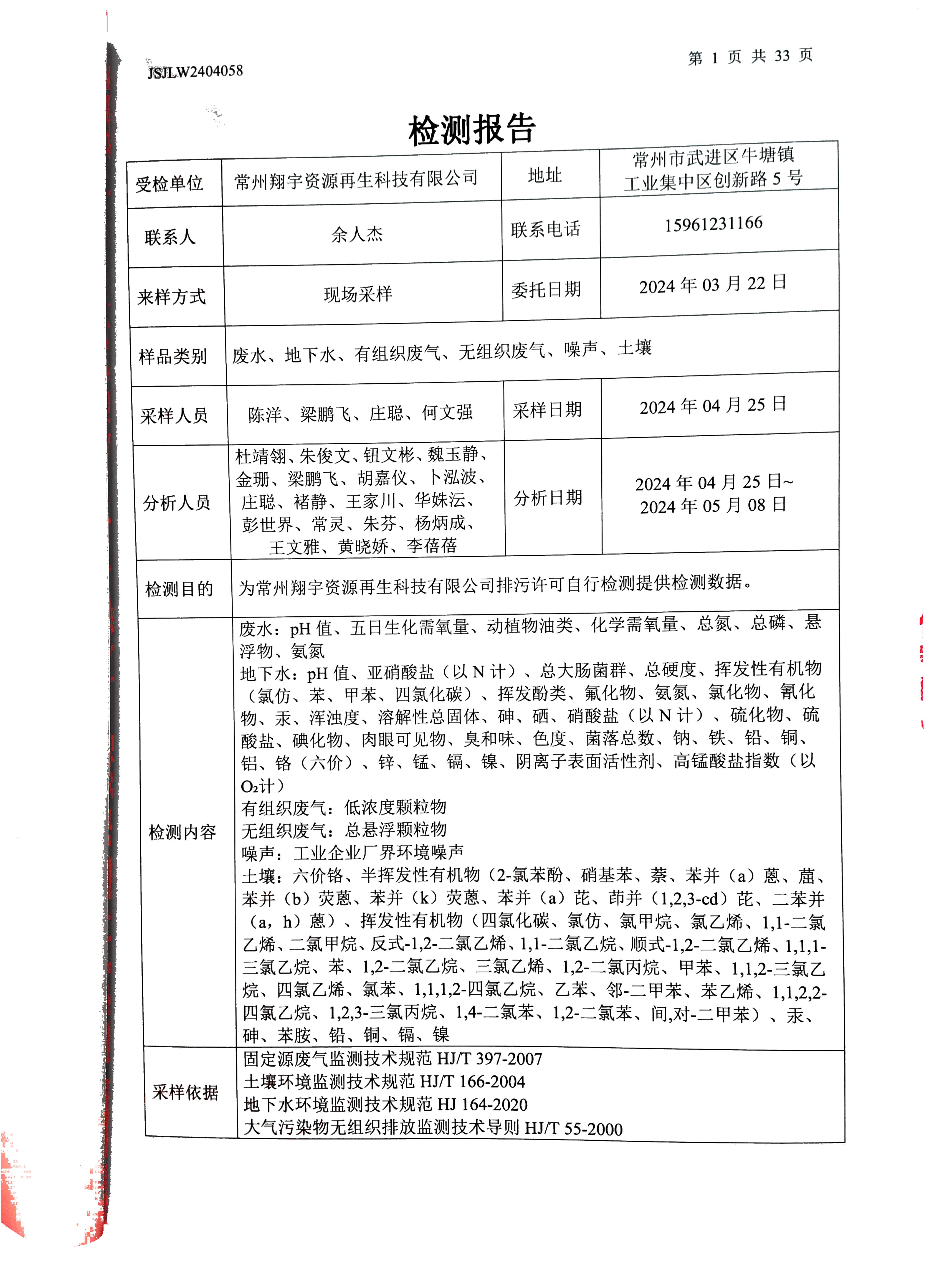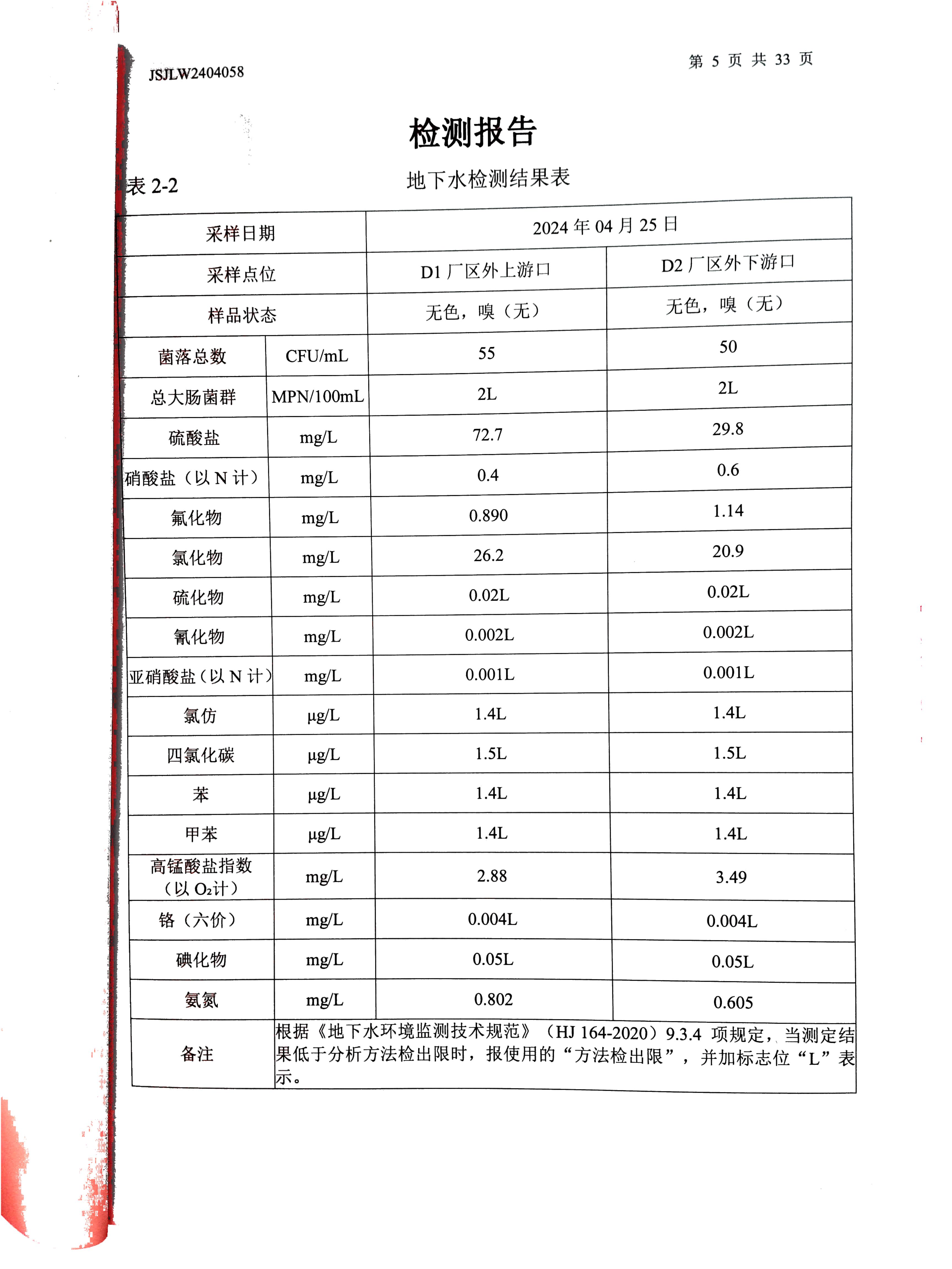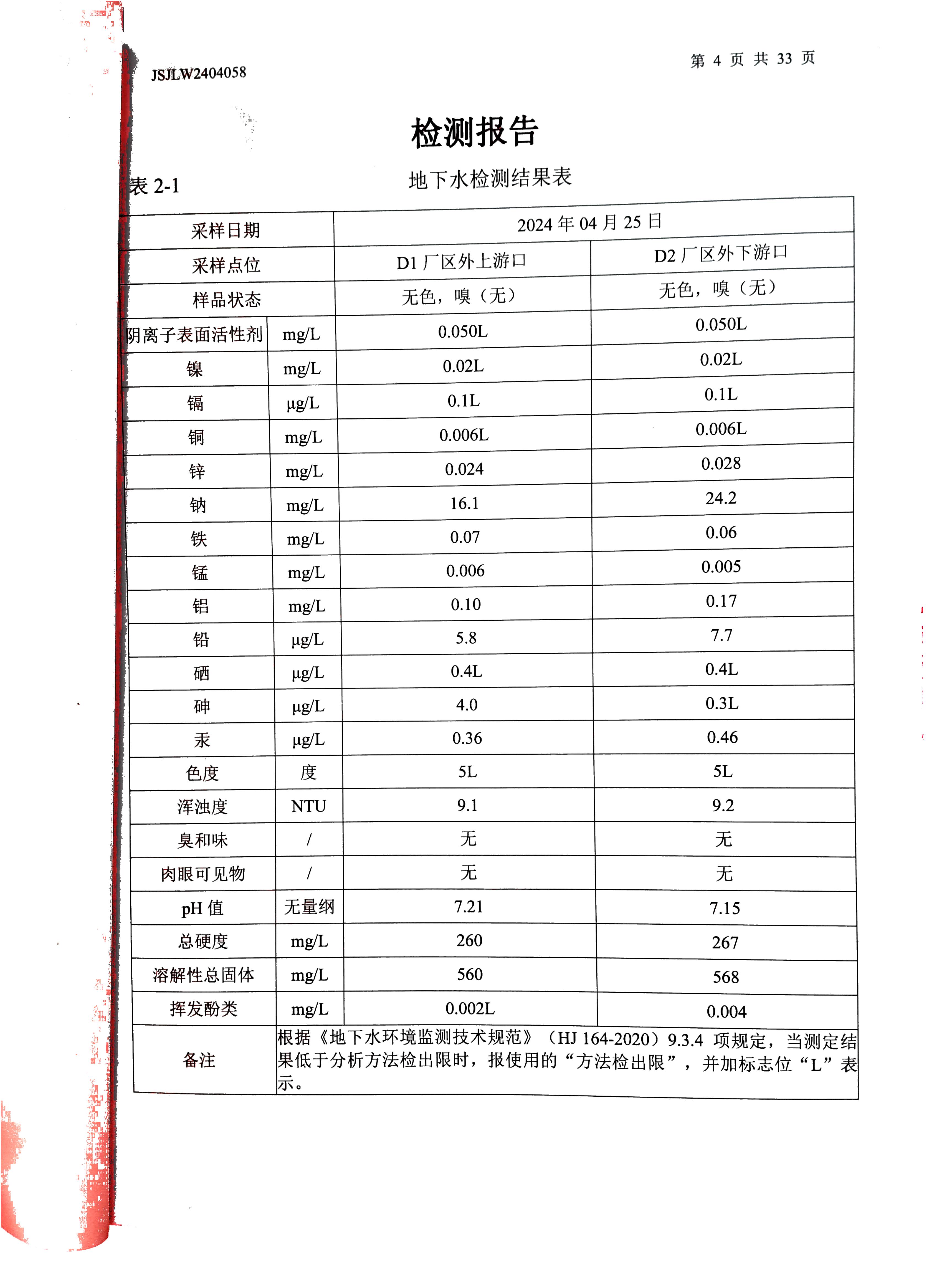 2024年4月25日废水,地下水,废气,噪声,土壤检测报告