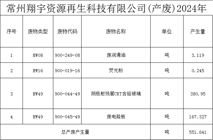 常州翔宇资源再生科技有限公司2024年全年拆解数据